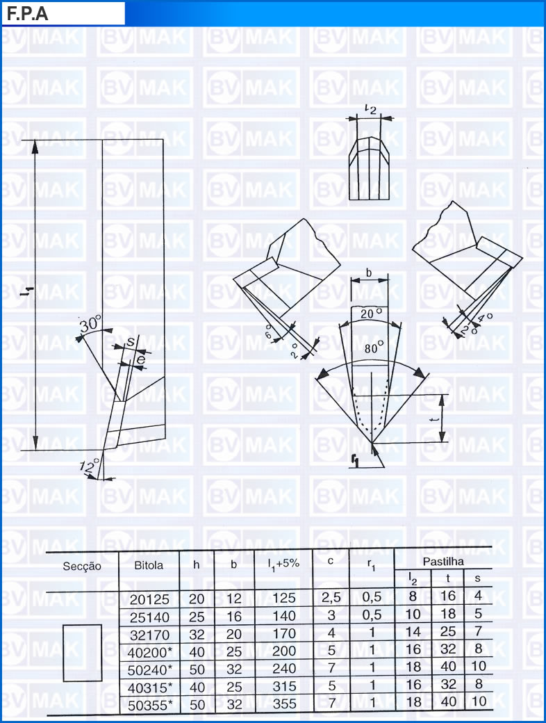 F.P.A. - FERRAMENTA DE PLAINA PARA ACABAMENTO