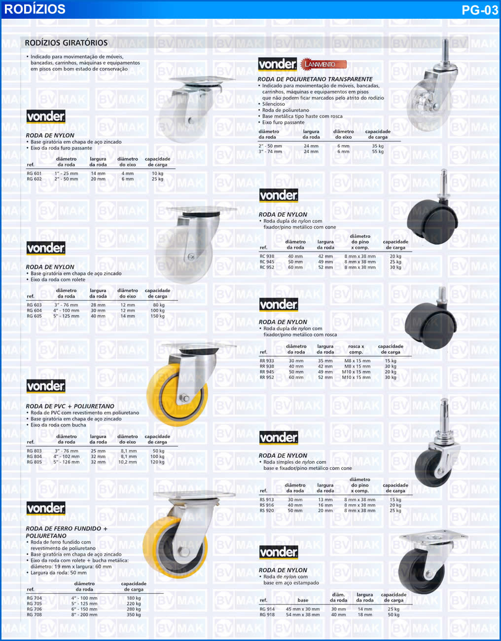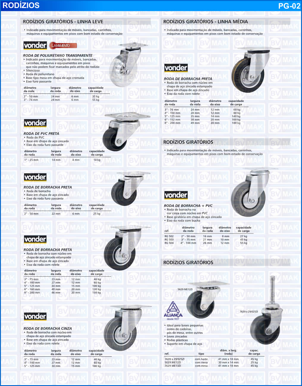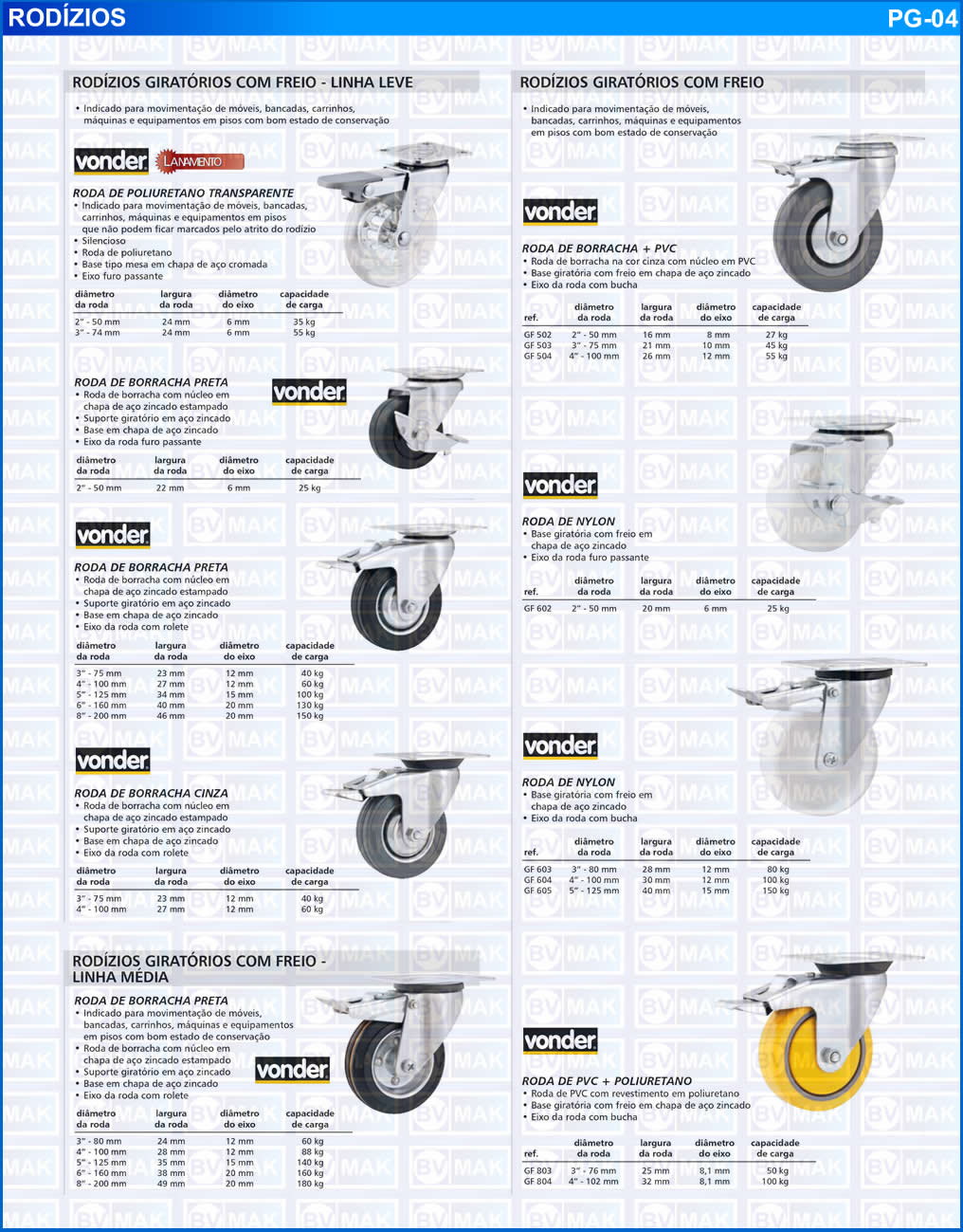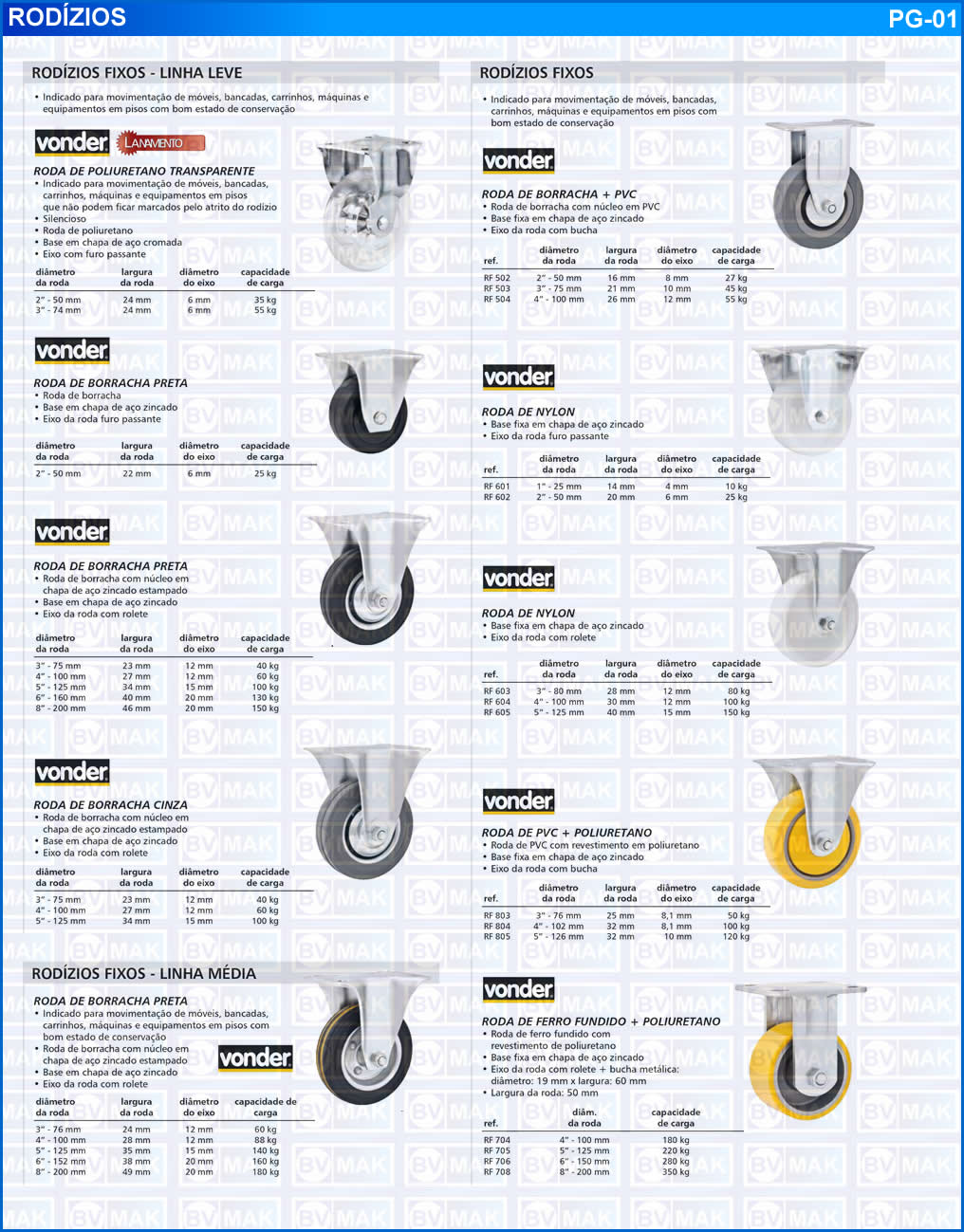 Linha Leve - Linha Média - Rodízios Fixos e Giratórios